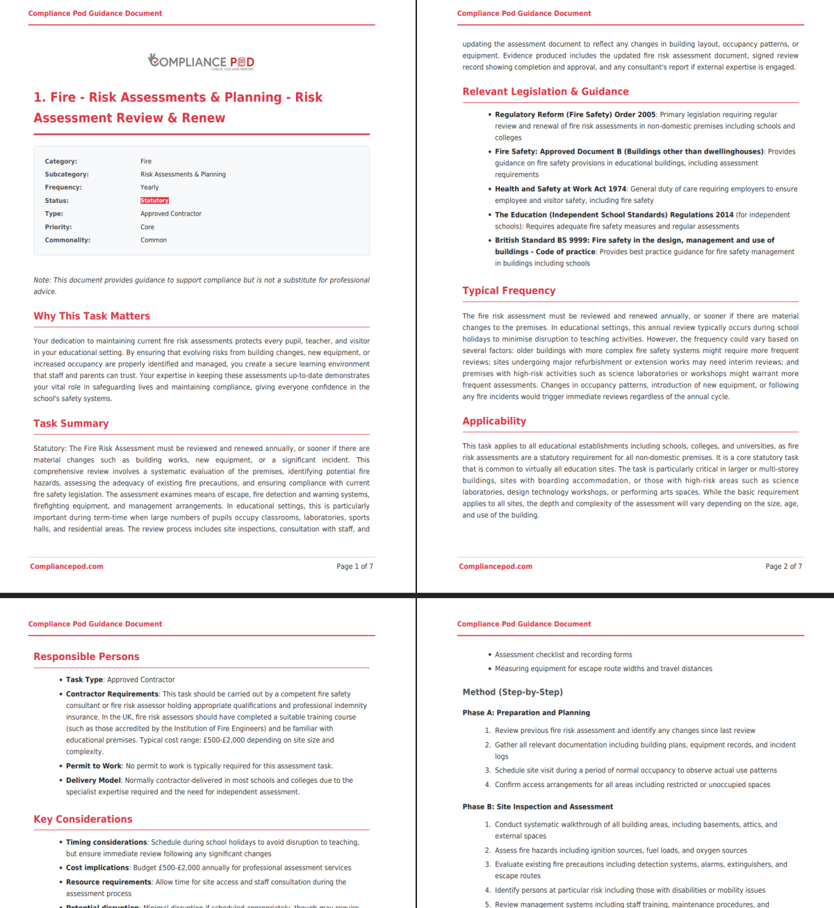 For Compliance Pod customers, all schedules and guidance documents are available in a dedicated Guidance Library within the system. They can be browsed and downloaded by category or accessed instantly through the active task forms that staff complete every day — ensuring the right information is always at hand.